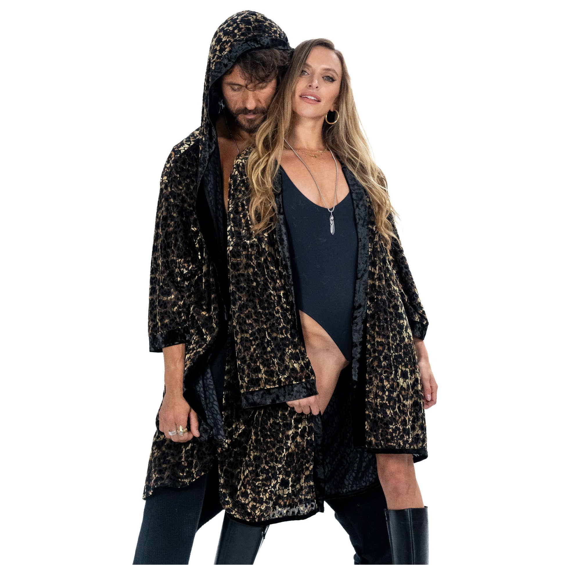 This kimono embodies a harmonious blend of lightweight, breathable, and durable features, cocooned in an irresistibly soft texture. Crafted from a 4-way stretch burnout velvet fabric, it ensures superior breathability, complemented by intricate patterned details. Designed to accommodate all sizes, this artisan-crafted piece is meticulously created in Los Angeles, California, and includes straightforward care instructions: cold wash and hang dry.